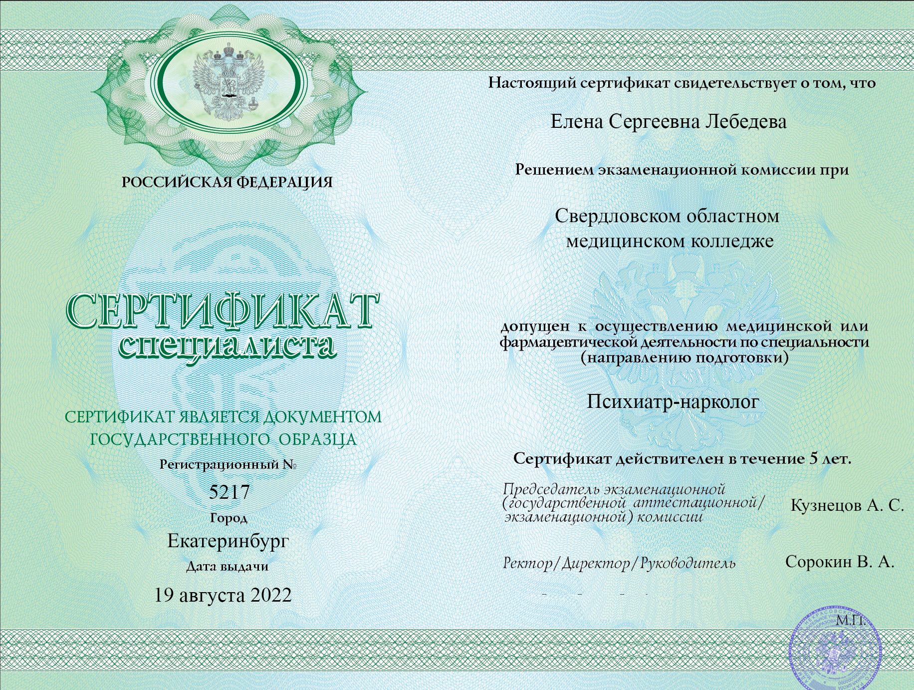 Елена Сергеевна Лебедева врач нарколог клиники доктора Стукаловой в Шилке